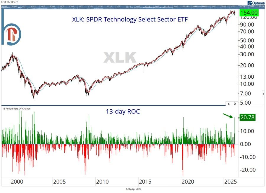 The Takeaway: The tech sector is exhibiting historically strong upside momentum, with a 13-day winning streak and gains exceeding 20%.
