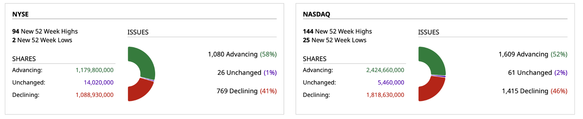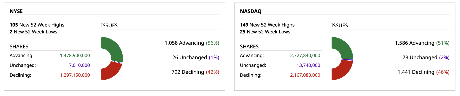 - NYSE volume 17% below its one-month average;