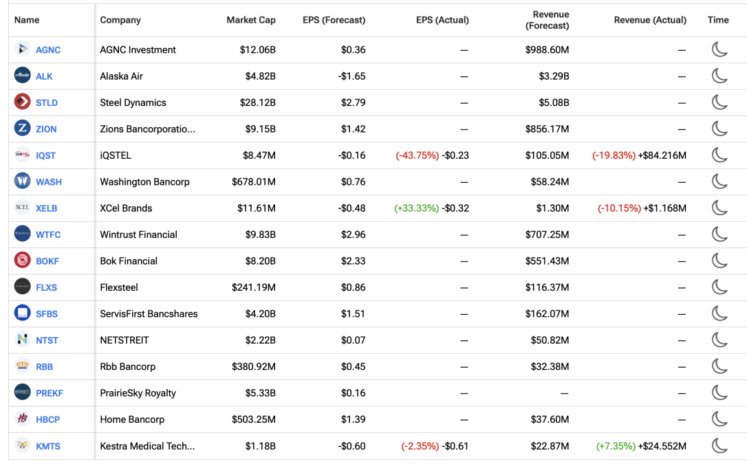 Earnings After the Close Monday April 20