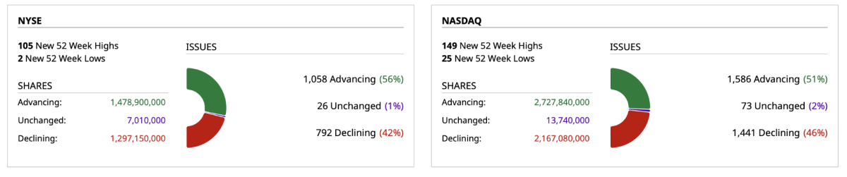 - NASDAQ volume 7% below its one-month average;